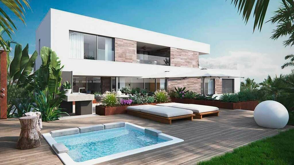 This exclusive luxury villa in Cala Medina offers breathtaking views of the Mediterranean and combines modern design with maximum comfort. On a generous plot of 1,000 m² and an impressive usable area of 560 m², the villa extends over several levels and is characterized by an architectural concept with clear, cubic and functional lines. It combines stylish elegance with innovative technologies and the highest standards.