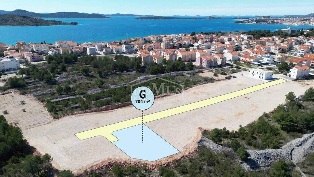 Srima, ruhige Umgebung, 490 m vom Strand Lovetovo entfernt. Das Baugrundstück hat eine Fläche von 704 m2, ist regelmäßig geformt, geräumt und eingeebnet, nicht eingezäunt. Öffentliche Infrastruktur (Strom, Wasser, Straßenbeleuchtung) und eine Asphaltstraße befinden sich ca. 120 m vom Grundstück entfernt. Gemäß dem gültigen Stadtplan der Stadt Vodice liegt das Grundstück in der M-Zone - Markierung 1.4. Es besteht die Möglichkeit ein Einfamilienhaus bis max. 4 Wohneinheiten zu bauen.