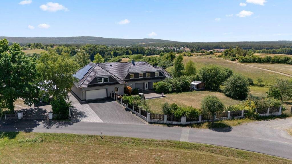 Diese exklusive Villa befindet sich in einer idyllischen Lage in Creußen und bietet ein einzigartiges Wohnerlebnis umgeben von der malerischen Landschaft der Region. Eingebettet in die Natur, lädt die Umgebung zu ausgedehnten Spaziergängen und Erholung in der Natur ein. Die Villa ist ein Rückzugsort für Menschen, die Ruhe und Privatsphäre schätzen, ohne auf die Annehmlichkeiten des täglichen Lebens verzichten zu müssen. Dank der großzügigen Grundstücksfläche genießen Sie absolute Ruhe und einen unverbaubaren Blick auf die umliegenden Wiesen und Wälder.