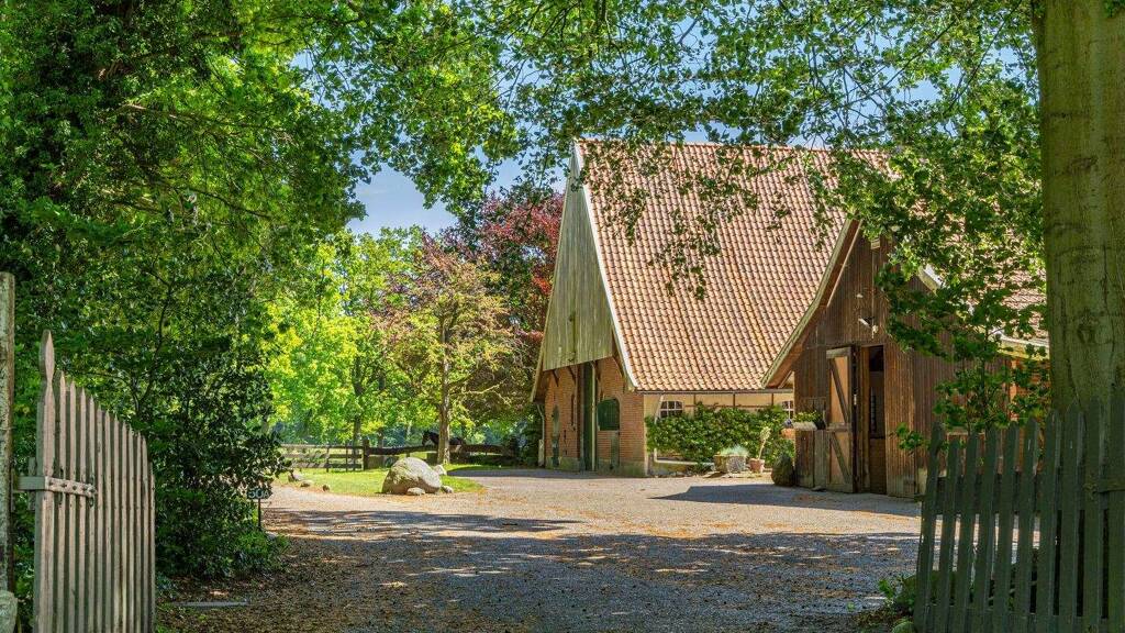 this unique estate sits on a central, yet secluded location at the edge of the quiet and green villa district het stokhorst. from the farmhouse you can walk straight into the park-like landscape of "de hoge boekel". the surroundings offer many walking and cycling routes to enjoy nature to the fullest.