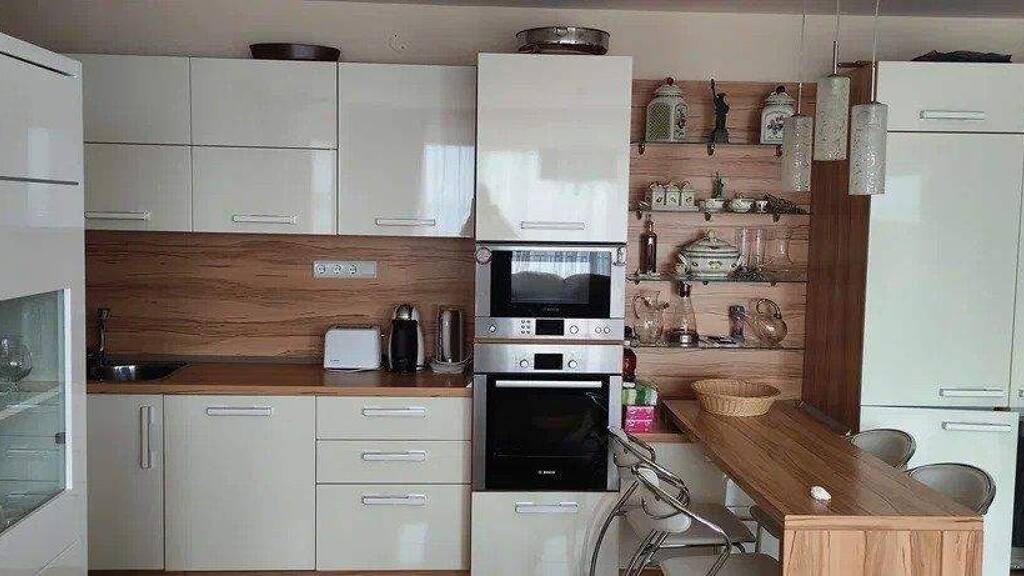 Die integrierte Küche verfügt über eine hochwertige Küchenzeile mit