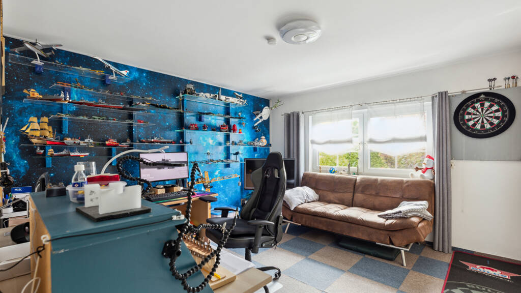 Dieses moderne Haus im zeitlosen Bungalowstil wurde im Jahr 2006 erbaut und bietet eine perfekte Kombination aus Wohnkomfort, Funktionalität und naturverbundener Lebensweise. Das Haus bietet eine Gesamtwohnfläche von etwa 100,74 m², die sich auf drei Zimmer im Erdgeschoss verteilt. Zusätzlich verfügt es über eine überdachte Terrasse und ein wohnlich ausgebautes Dachgeschoss. Die Räumlichkeiten setzen sich aus einem Schlafzimmer, einem einladenden Wohnzimmer, einem vielseitig nutzbaren Arbeitszimmer/ Hobbyraum und einem Vollbad mit Dusche sowie einem im Obergeschoss gelegenen Gästezimmer zusammen. Ein besonderes Highlight dieser Immobilie ist zweifellos der wundervolle grüne Garten mit einer einladenden Terrasse. Hier kann man die Freizeit im Freien genießen, entspannte Grillabende veranstalten oder auf der Terrasse Sonne tanken. Eine Garage, die nicht nur Platz für Fahrzeuge, sondern auch für zusätzlichen Stauraum bietet, runden das Angebot ab.