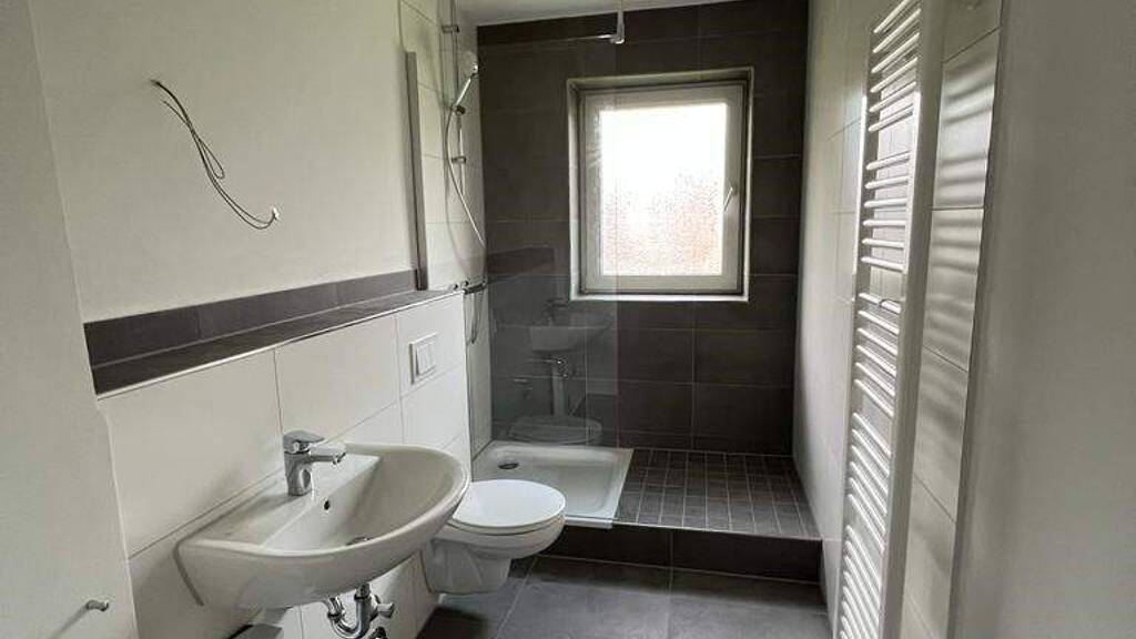 - neues modernes Badezimmer mit Dusche und Fenster, anthrazit-farbene Bodenfliesen und großformatige weiße Wandfliesen - Decken Raufaser weiß -Wände gespachtelt in Q3 Qualität - neues Schaltermaterial - moderne Gegensprechanlage - Weißer Fliesenspiegel in der Küche (Wand) - Rauchwarnmelder
