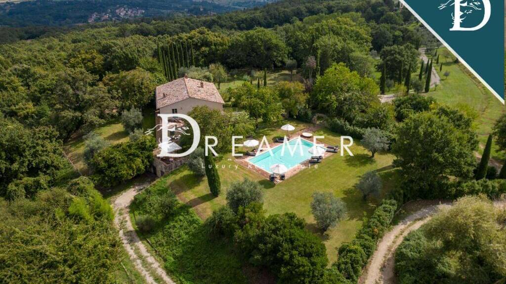 Splendid Tuscan villa with swimming pool for sale in the province of Siena, less than 3 km from the center of Cetona. The farmhouse of approximately 580 sqm, with 6 bedrooms and 7 bathrooms, has been recently renovated and is spread over two levels. The prestigious villa maintains the typical characteristics of Tuscan architecture such as exposed beams and original terracotta floors.