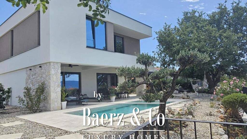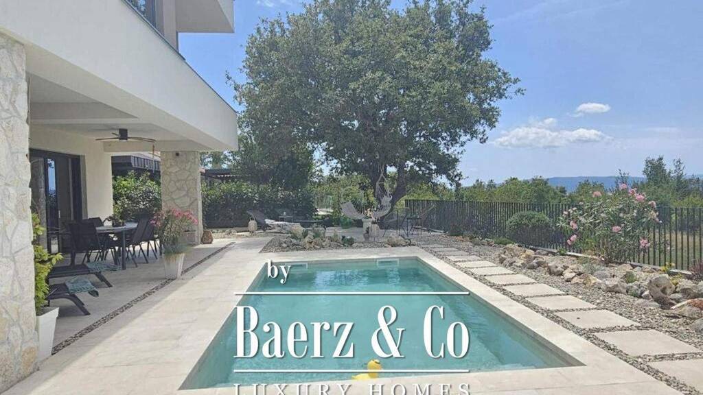 pin the peaceful village of linardici, this exceptional newly built luxury two-story villa offers 200 m² of living space on a 444 m² plot./ppthe southern and western orientation ensures an abundance of natural light, creating an airy and pleasant atmosphere throughout four spacious bedrooms and four elegantly designed bathrooms. ideal for family living or a luxurious holiday retreat, every room has been carefully designed with a strong emphasis on high-quality materials. the open-concept living room and kitchen create a seamless space for socializing, while large glass openings connect the interior with the outdoor oasis and beautiful views./ppthe exterior area is a true mediterranean idyll, featuring an impressive swimming pool surrounded by a sun deck and landscaped garden, perfect for refreshment and relaxation. for a complete wellness experience, the villa also includes a private sauna, ideal for unwinding./ppthis property represents an outstanding investment opportunity. the proximity to the sea, unspoiled nature, and all the amenities of the island of krk make this villa perfect for permanent residence, a luxury holiday home, or tourist rental./ppfor more detailed information, please feel free to contact us./p