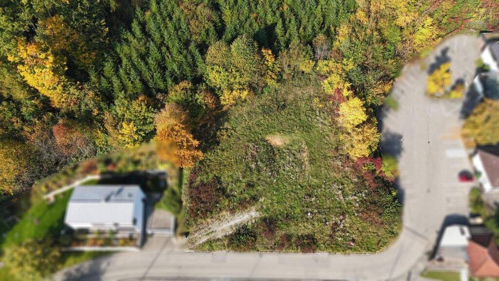 Das wunderschöne, 982 m² große Baugrundstück liegt in exklusiver Höhenlage direkt am Waldrand und bietet einen atemberaubenden Panoramablick auf die Alpen.