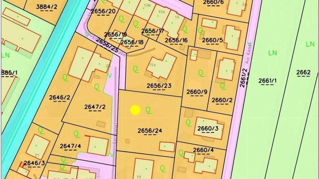 Gst.-Nr. 2653/24 (gemäß Teilungsentwurf) 550 m² mit der Dienstbarkeit des Geh- und Fahrrechts für Gst. 2656/25 = Kaufpreis € 380.000,--