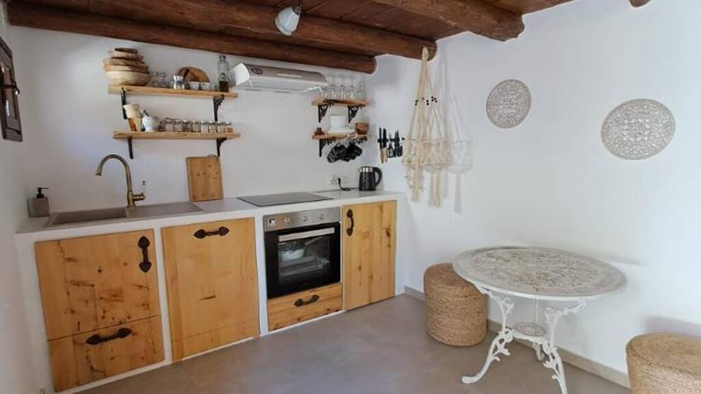 Die dritte Villa erstreckt sich über eine Etage und öffnet sich in den offenen Wohn-/Schlafbereich mit Kamin. Eine Stufe nach oben führt Sie zur Küchenzeile und zum Badezimmer mit einer Waschmaschine. Im selben Gebäude gibt es auch einen Raum, der derzeit als Rezeption der Villen genutzt wird. Draußen bietet das Anwesen Gärten mit farbenfrohen Pflanzen und Terrassen, auf denen Sie sich entspannen und die Sonne genießen können.