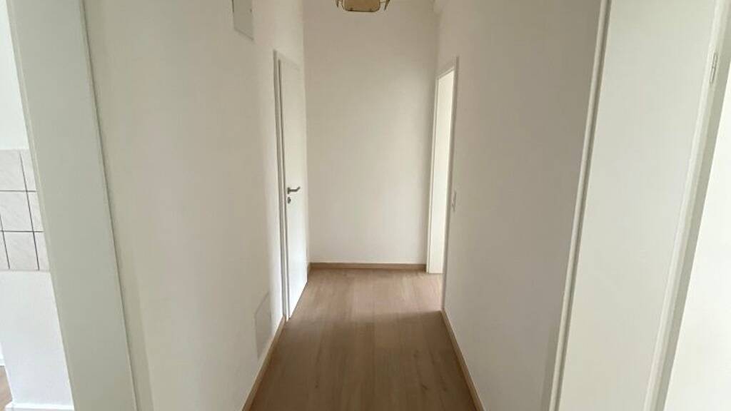 Die Wände der Wohnung sind mit weißer Raufasertapete gestaltet und sorgen für eine helle, freundliche Atmosphäre. Das Badezimmer wurde vollständig erneuert, modern gefliest und mit einer Badewanne sowie einem WC mit Vorwandmontage ausgestattet.