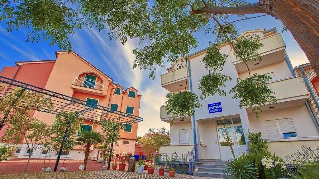In ruhiger Lage nahe Vodice befinden sich zwei gepflegte Gebäude auf einem großzügigen Grundstück von 1.393 m², umgeben von mediterranem Grün und mit ausreichend Parkplätzen. Die Anlage wirkt wie eine kleine Oase der Ruhe, in der Gäste sofort zur Ruhe kommen und Investoren eine solide Basis für langfristige und stabile Einnahmen sehen. Das Meer ist ca. 380 m und der gepflegte Strand ca. 680 m entfernt, sodass Gäste alles angenehm nah beieinander haben und gleichzeitig fernab vom Trubel der Touristenströme sind.