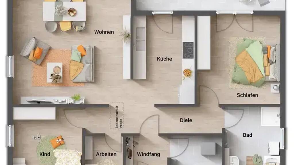 Vollausstattung inklusive - Sie wählen Ihr Traumhaus, wir bauen regional. - Wärmepumpe: Heute bereits an Morgen denken - in jedem Haus ist eine Wärmepumpe inklusive. Sie erfüllen die aktuellen Energiestandards, sparen bares Geld und reduzieren Ihren CO2-Fußabdruck. - Massiv gebaut und gedämmt: Wir setzen auf massives Mauerwerk. Das schont nicht nur Ressourcen und Ihr Budget, sondern dämmt auf ganz natürlichem Weg und ohne schädliches Styropor. - Fußbodenheizung: Warme Füße? Auch die Fußbodenheizung ist inklusive. Sie steigert nicht nur den Wert Ihres Hauses, sondern sorgt ganz nebenbei noch für echtes Wohngefühl. - Vorrüstung E-Auto: Wir denken nicht nur mit, sondern setzen auch direkt um. Alle unsere Häuser haben eine E-Auto-Vorrüstung. Damit sind sie mobil, flexibel und bleiben beweglich. - Rollläden: Ihr Haus sorgt nicht nur für ausreichend Sicherheit, sondern auch für einen sommerlichen Wärmeschutz. Bereits inklusive sind die Rollläden. - Vorrüstung Photovoltaik: Auch wenn es um Energie geht, können Sie sich sicher sein. Mit der Photovoltaik-Vorrüstung bleiben Sie flexibel und machen sich unabhängig von steigenden Energiepreisen. Dann, wenn Sie es wollen. Ausreichend Platz für einen Energiespeicher bietet Ihr Hausanschlussraum. - Sanitärausstattung: Ihre Badezimmer sind voll ausgestattet. Dazu gehört auch eine bodengleiche Dusche. - Elektroausstattung: Wir bieten Ihnen ein wenig mehr. Ihre Haustechnik sorgt für einen energiegeladenen Alltag, behagliche Wärme und umweltschonendes Wohnvergnügen. - Schlüsselfertig: Ihr Haus wird Ihnen, am Ende der Bauzeit, schlüsselfertig übergeben. Sie richten sich ganz nach Ihrem Geschmack ein. - Sicher gebaut: Ihr persönlicher Hausbau-Schutzbrief schützt Sie mit einem garantierten Festpreis, einer Bauzeitgarantie und transparenten Baukosten. Ohne Tapezier- und Bodenverlegearbeiten. Abbildungen können Sonderwünsche enthalten. *ausschließlich unter Verwendung deutscher Markenprodukte!