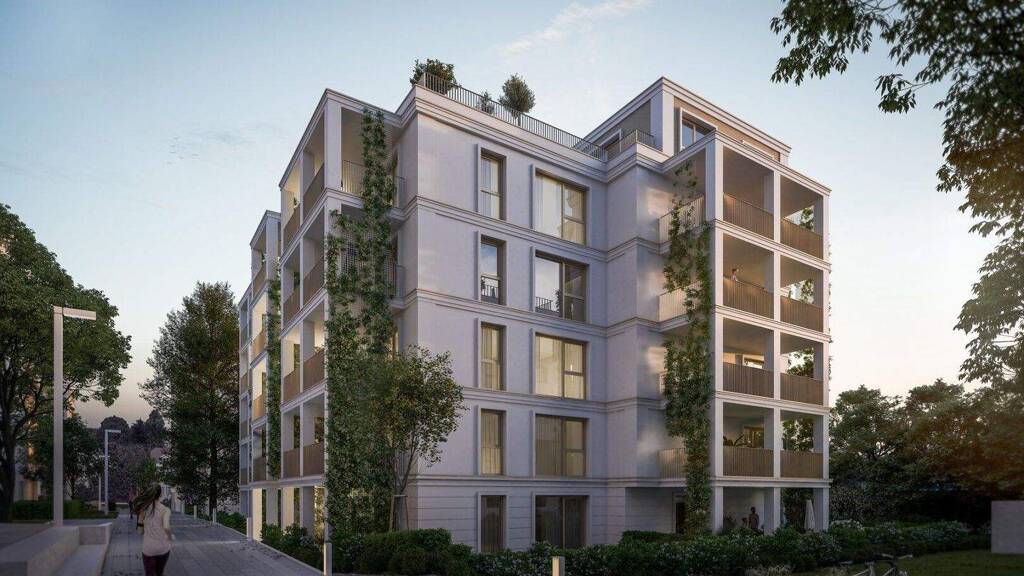 Fünf Stadtvillen beherbergen 126 Wohnungen und 100 Garagenstellplätze von parkartigem Grünraum umgeben in bester Cottagelage.