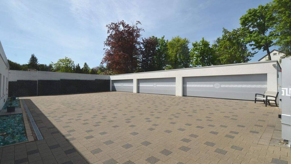 Die Nutzfläche im Gartengeschoss von 135 m² teilt sich auf in zwei Kellerräume, einen Hauswirtschaftsraum sowie den Heizraum. Weitere ca. 200 m² Nutzfläche bietet die Garagenanlage mit Platz für bis zu 9 Autos, 3 Sektionaltoren und einer Wallbox mit 11 kW.
