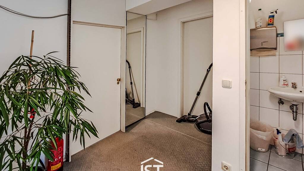 Beim Betreten des Büros gelangen Sie in einen kleinen Vorraum, von dem aus die Haupträume zugänglich sind. Rechts befindet sich ein WC, während Sie linkerhand in den großen, hellen Hauptraum gelangen, der Platz für mehrere Arbeitsplätze bietet und flexibel gestaltet werden kann. Ein anschließender Besprechungsraum mit Möglichkeiten zum Einbau einer Teeküche sorgt für ein zusätzliches Plus an Komfort und bietet dank der Fenster ebenfalls eine freundliche, lichtdurchflutete Atmosphäre.