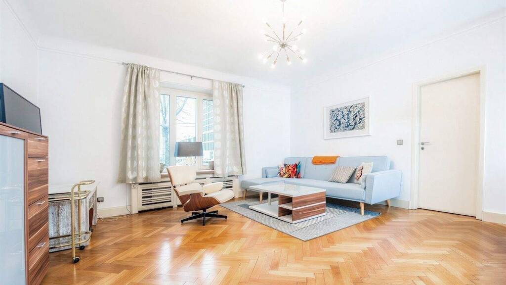 Bereits beim Betreten der Wohnung wird der hochwertige Ausstattungsstandard spürbar: Edles Parkett in klassischer Fischgrätoptik zieht sich harmonisch durch Wohn-, Schlaf- und Küchenbereich und verleiht den Räumen eine warme, repräsentative Atmosphäre. Die im Jahr 2010 vollständig renovierte Wohnung präsentiert sich in einem äußerst gepflegten Zustand und erfüllt gehobene Wohnansprüche.