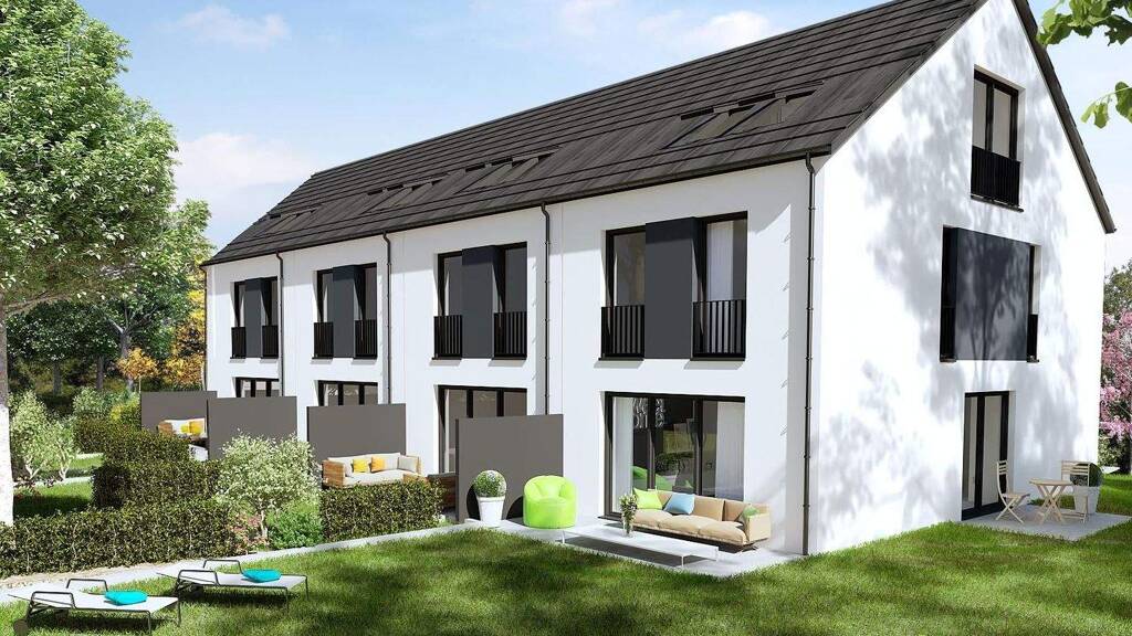 Willkommen in Ihrem neuen Zuhause! Dieses moderne Neubau-Reihenhaus bietet zeitgemäßen Wohnkomfort mit hochwertiger Ausstattung. Über die Diele gelangen Sie in den großzügigen, offenen Wohn-, Koch- und Essbereich mit direktem Zugang zur Terrasse aus hochwertigen Betonwerksteinen. Optional kann ein Gäste-WC integriert werden. Im Obergeschoss befinden sich zwei Schlafzimmer sowie ein Badezimmer. Das Dachgeschoss ist zum Ausbau vorbereitet und kann flexibel gestaltet werden - wahlweise mit einem großen oder zwei kleineren Zimmern und Bad. Ein eigener Kellerabteil sorgt für zusätzlichen Stauraum. Das Haus ist mit dreifach verglasten Kunststoffisolierfenstern (im Dachgeschoss zweifach) sowie Rollläden ausgestattet, auf Wunsch elektrisch. Eine Wärmepumpe sorgt für effiziente Beheizung über eine Fußbodenheizung, optional erweiterbar durch eine Photovoltaikanlage. Eine Smart Home-Steuerung ermöglicht die zentrale Bedienung von Beleuchtung, Heizung, Jalousien und Sicherheitssystemen. Die Wohnraumlüftung erfolgt nach Vorgaben des Energieberaters. Die Geschosse sind mit hochwertigen Zwei-Holm-Stahltreppen mit Trittstufen aus massiver Buche verbunden. Das Haus ist voll unterkellert. Ein Stellplatz in der Tiefgarage kann mit erworben werden. Bitte beachten Sie, dass einige Innenausbauleistungen, wie Sanitäranlagen, Armaturen, Bodenbeläge sowie Maler- und Tapezierarbeiten, nicht im Standard-Leistungsumfang enthalten sind. Änderungen außerhalb der Sonderausstattungsliste sind nicht realisierbar. Weitere Details entnehmen Sie der Baubeschreibung.