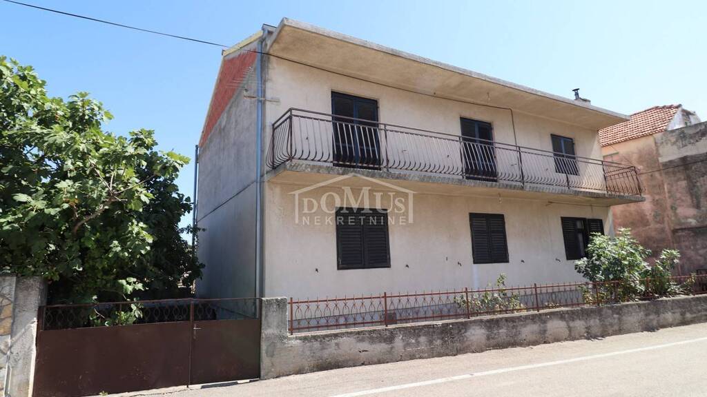 Pirovac, freistehendes Einfamilienhaus mit 208,26m2 Nutzfläche. Es besteht aus Keller, Erdgeschoss und Obergeschoss und verfügt über zwei separate Wohneinheiten und einen Garten. Im Erdgeschoss befindet sich eine möblierte, großzügige 4-Zimmer-Wohnung mit Küche, Bad und Abstellraum. Die Innentreppe führt in die Etage, wo sich eine unfertige Dreizimmerwohnung in hoher Rohbauphase mit zwei großen Balkonen befindet, zu denen alle Räume und das Wohnzimmer Zugang haben, außerdem gibt es an der Südwest Seite des Hauses einen weiteren kleineren Balkon. Das Haus wurde in den 1970er Jahren erbaut und das Holzdach 2009 montiert. Das Haus ist auf einem Grundstück von 378 m² gebaut, hat Zugang über zwei Straßen und einen großen Hof mit eingezäuntem Garten und Parkplatz. Im Keller befindet sich ein großer Abstellraum. Das Haus liegt nur 400 m vom Strand und 300 m vom Stadtzentrum entfernt.