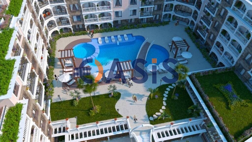 Apartment mit einem Schlafzimmer in einem neuen Komplex in der ersten Reihe der Valencia-Gärten in Nessebar, 103,41 m², Bulgarien, 160.000 Euro