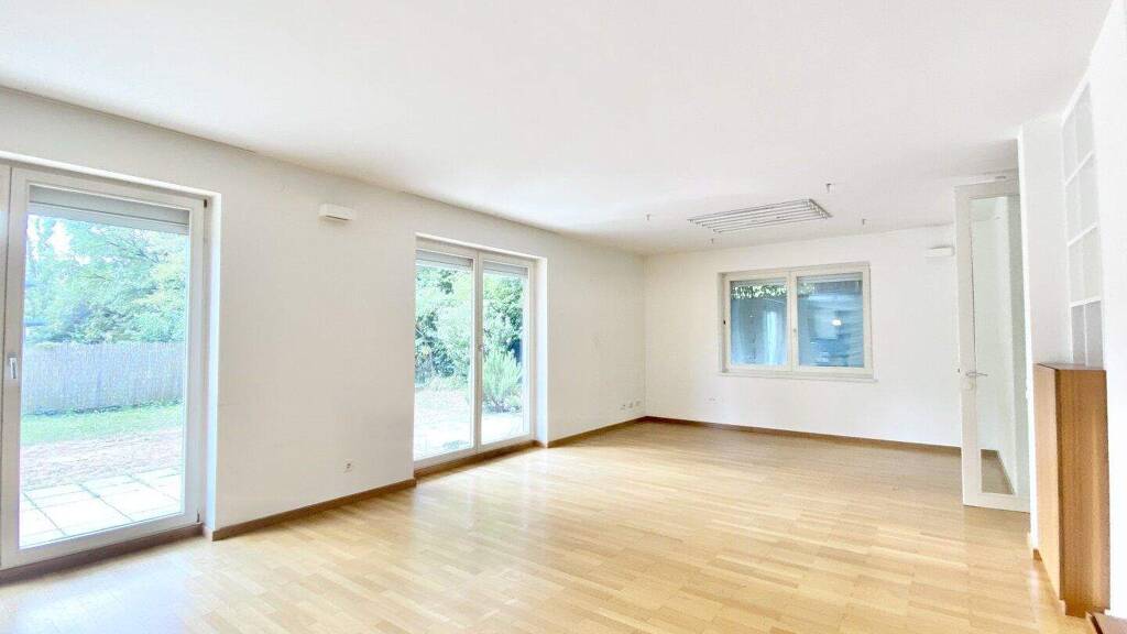 Die helle ca. 118 m² große Wohnung liegt im Erdgeschoss eines gepflegten Neubaus in- bester Döblinger Lage. Sie verfügt über einen zentralen Vorraum mit praktischen Einbauschränken für die Garderobe, drei Schlafzimmer, ein Bad mit Badewanne, WC Waschmaschinenanschluss, eine Abstellraum sowie ein separates WC. Praktische Einbauschränke und Regale im Vorraum und im Wohnzimmer bieten optimalen Stauraum. Highlight der Wohnung ist das große Wohnzimmer mit anschließender Küche, von dem man auf eine ca. 37 m² große Terrasse und in den Garten gelangt. Eine Markise mit Fernsteuerung sorgt für angenehme Beschattung auf der Terrasse. Die Wohnräume sind mit Parkettboden und die Nassräume mit Fliesen ausgestattet. Geheizt wird mittels Fußbodenheizung mit einer Gastherme. Für zusätzlichen Stauraum sorgen ein Kellerabteil.