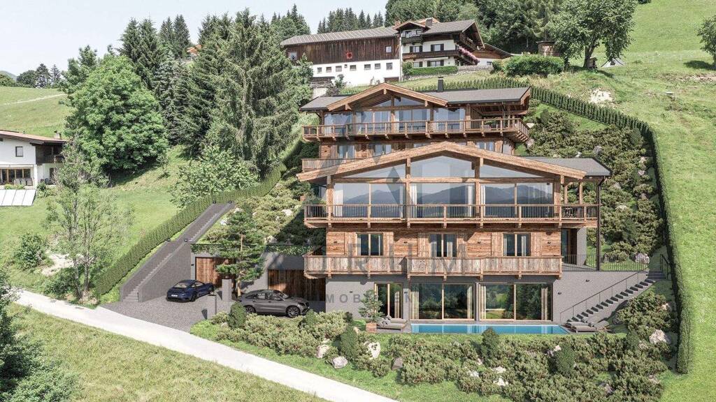 Chalet I - Wohn-/Nutzfläche ca. 404 m² Wohnfläche ca. 322 m² Nutzfläche ca. 26 m² Garage ca. 56 m² Terrasse/Balkon ca. 130 m² 5 Schlafzimmer mit Bad en Suite Offener Kamin, Wellnessbereich, Outdoor Pool, Weinkeller