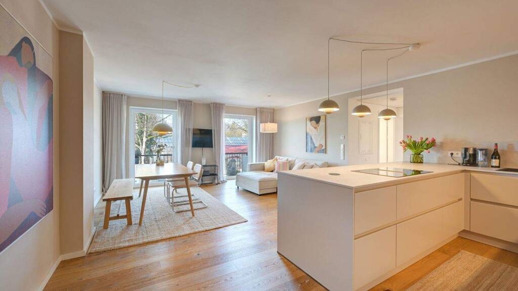 Diese hochwertige 4-Zimmer-Wohnung überzeugt durch modernes Design, eine durchdachte Raumaufteilung und eine erstklassige Ausstattung. Großzügige Fensterflächen sorgen für helle, lichtdurchflutete Räume und schaffen ein angenehmes Wohnambiente.