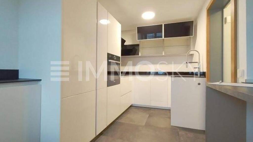Raumaufteilung: Gäste- oder Bürozimmer Hochwertige Küche mit Glasplatte und Einbaugeräten Wohnbereich mit verglaster Balkon Gäste WC Kinderzimmer Elternschlafzimmer Badezimmer
