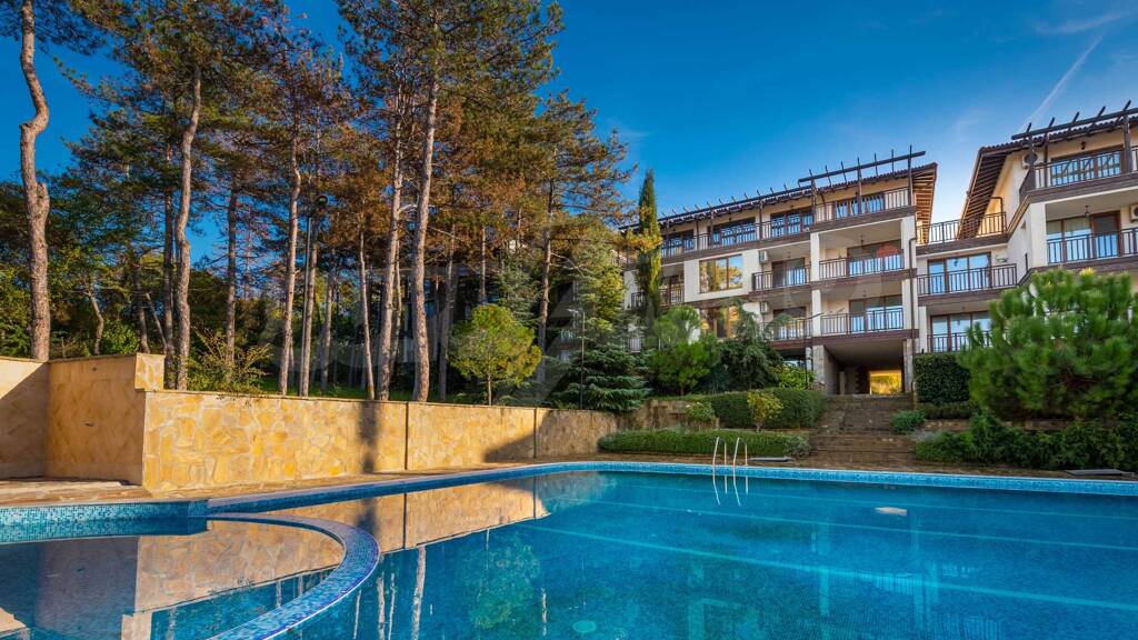 Wir präsentieren eine Panorama-Zweizimmerwohnung von 99,11 m² zum Verkauf in einem neuen Komplex mitten in einem Kiefernwald, nur 250 Meter von den Stränden "Tsarski Zaliv" und "Zlatna Ribka" und nur wenige Autominuten vom Strand entfernt Stadt Sosopol.
