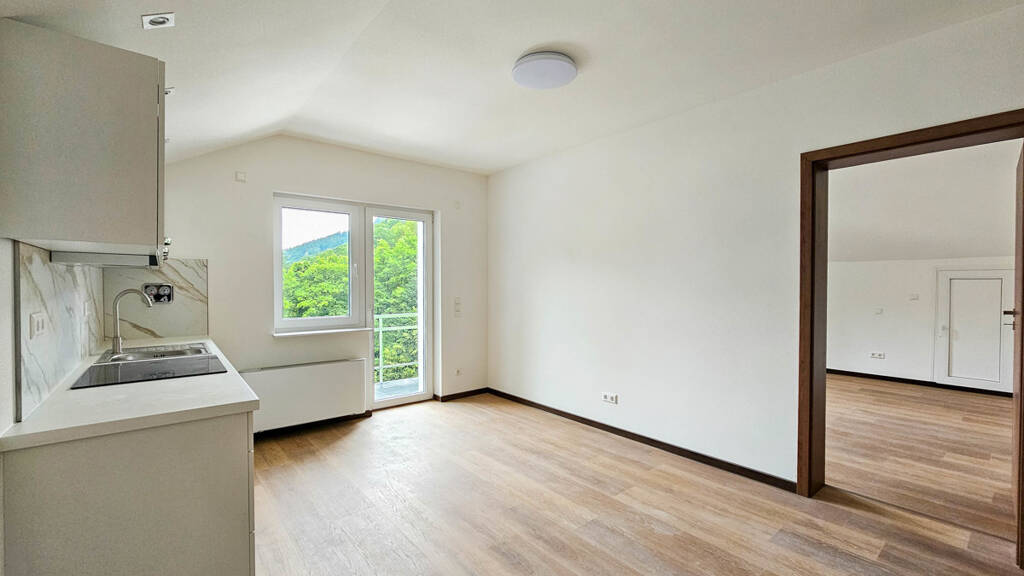 Der helle Wohnbereich und das Schlafzimmer bieten den direkten Zugang zum großzügigen Balkon - perfekt zum Entspannen mit Blick ins Grüne. Die moderne Einbauküche ist bereits vollständig integriert und fügt sich perfekt in das offene Wohnkonzept ein. Ein Gäste-WC und ein Abstellraum runden diese Wohnung ab.