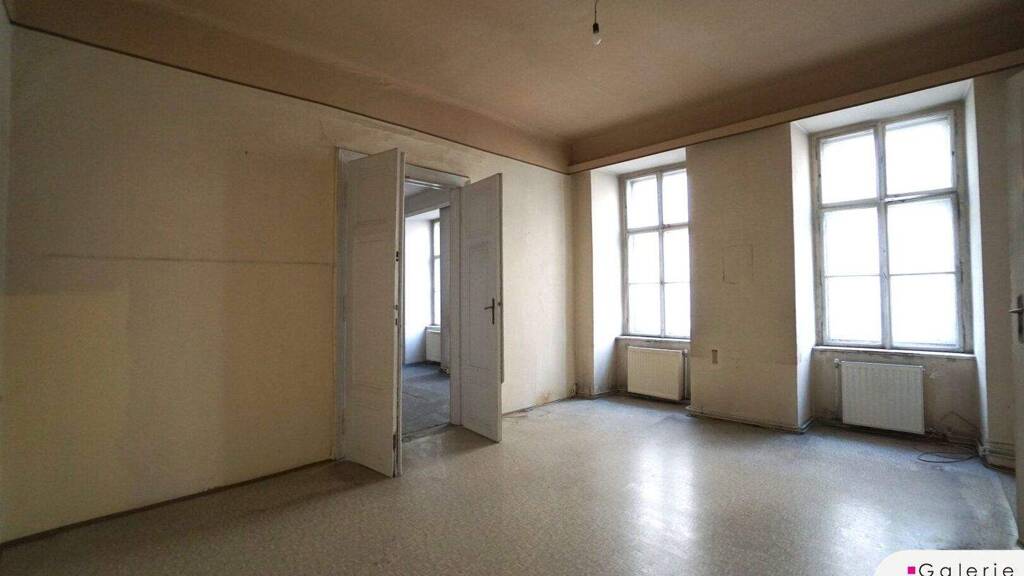Beim Naschmarkt gelangt im 1. Liftstock eines schönen Eckzinshauses eine sanierungsbedürftige Wohnung zum Verkauf. Die helle 4-Zimmer-Wohnung verfügt auf 125m² Wohnfläche über 4 Zimmer, eine Küche mit Anschlüssen, ein Badezimmer mit Dusche und Waschbecken und eine separate Toilette. Kastenfenster und Flügeltüren gehören zur Ausstattung. Beheizt wurde die Wohnung mit einer Gasetagenheizung, die im Zuge der Generalsanierung erneuert werden muss.