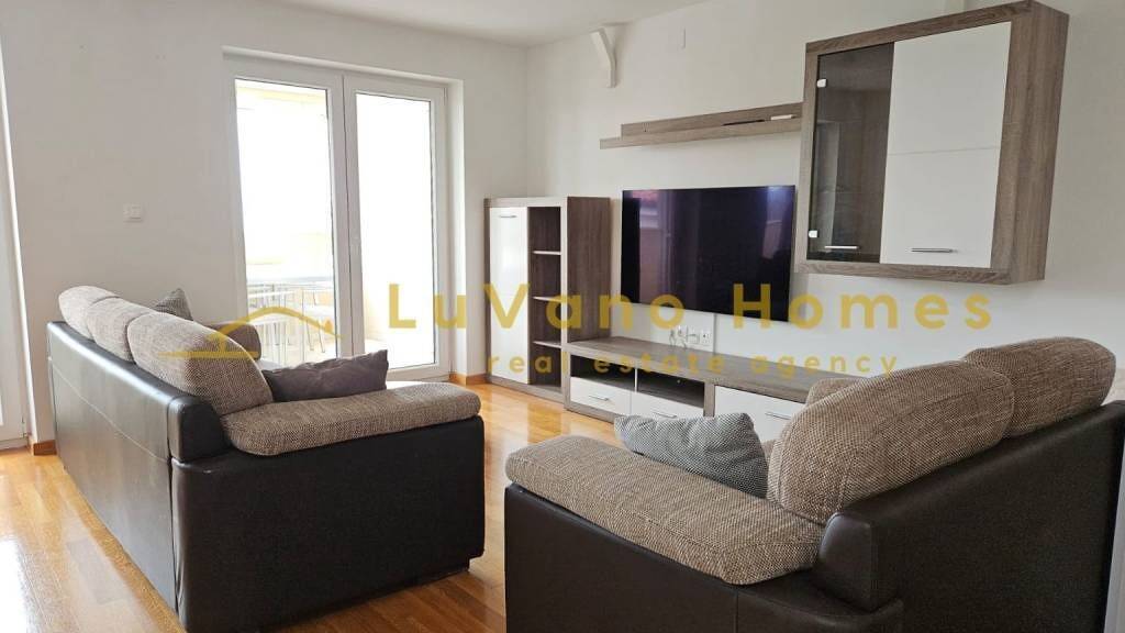 Malinska, 3-bedroom apartment + living room, 100 m², duplex with two terraces For sale, a beautiful and tastefully decorated furnished duplex apartment with two south-facing terraces offering a sea view. The apartment is located on the 1st floor of a building with a total of four apartments and consists of two levels. On the first level, there is a kitchen, bathroom, and a spacious living room with access to a terrace with a sea view. On the second level, there are three bedrooms and a bathroom. Two of the south-facing bedrooms have access to a shared terrace with a sea view. The apartment also includes two parking spaces, one of which is covered and arranged as an outdoor storage area. The apartment is fully furnished and is being sold as such. The building is situated in a very quiet and pleasant location. The agency fee is charged in accordance with the General Terms of Business: https://luvano.homes/terms