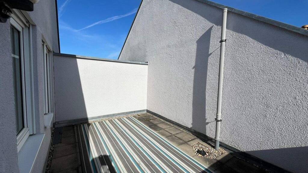 - Einbauküche - Laminat- und Parkettboden - Tageslichtbad mit Dusche und Wanne - Dachspitz ausgebaut - Sonnenterrasse uneinsehbar