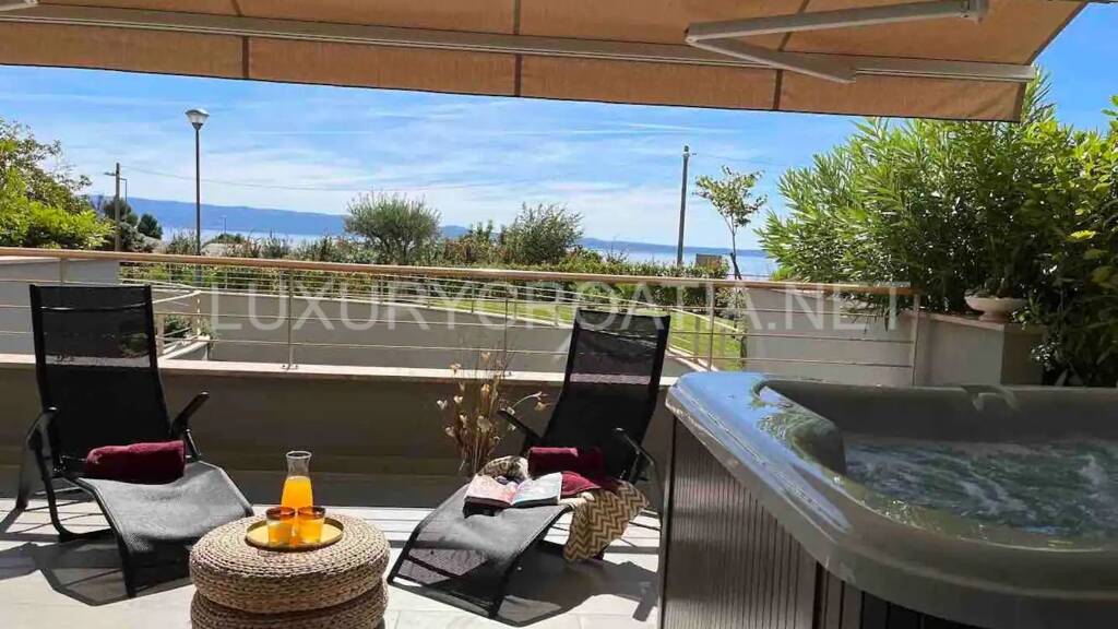 Dieses gemütliche Apartment zum Verkauf mit Meerblick, Garage und Whirlpool am Strand in Split, Kroatien, liegt nur wenige Gehminuten vom Strand entfernt.
