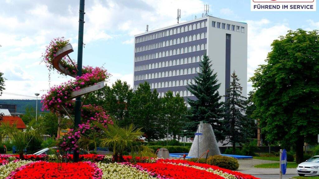 Zum Verkauf stehen ZWEI GANZE STOCKWERKE (8. und 9. Stock) des höchsten Gebäudes der Region Ternitz, Niederösterreich. Diese einzigartigen Flächen bieten eine hervorragende Gelegenheit für Unternehmen, die auf der Suche nach exklusiven Büro- oder Gewerberäumen in bester Lage sind. Beide Etagen sind mit jeweils ca. 500 m² bestens für moderne Arbeitswelten geeignet und bieten einen beeindruckenden Ausblick sowie eine TOP-Anbindung an das Verkehrsnetz.