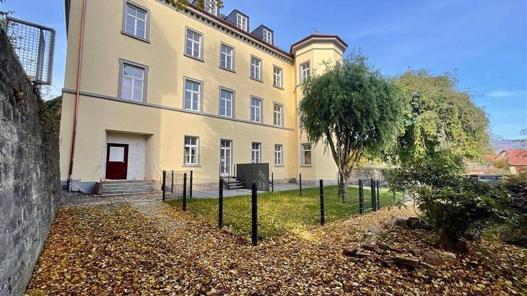 Im Jahr 2022, nach eineinhalbjähriger, aufwendiger Sanierung (Heizung, Heizkörper, Wasserleitungen, Strom, Dachdämmung, Dach, Fassade, Fenster, Türen, Balkone, ...), fand das ehemalige Landratsamt erstmals seinen neuen Nutzen als Wohnraum. Nun warten satte 126 m² Wohnfläche auf ihren Zweitbezug.