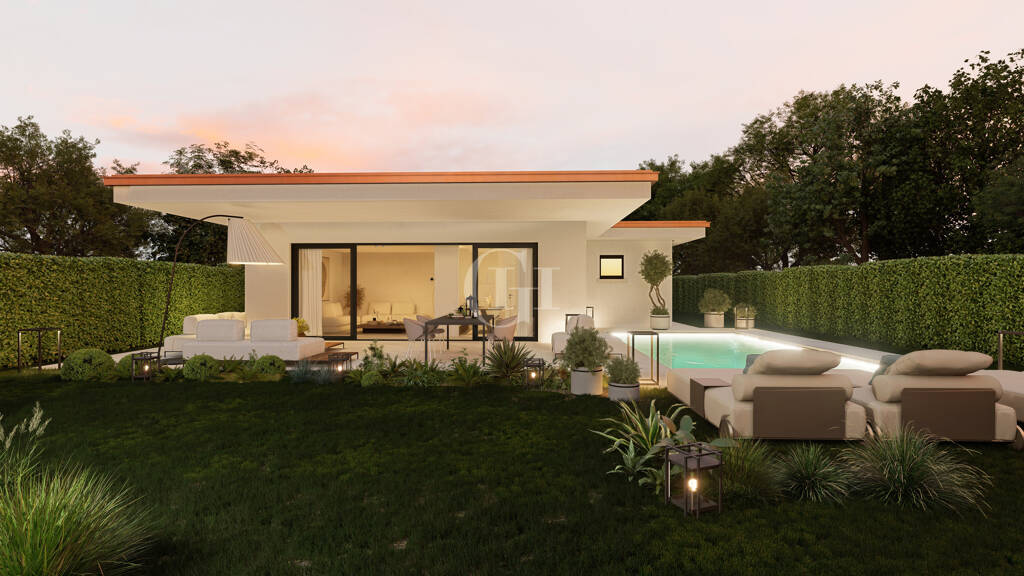 Der private Pool wird zur Bühne für Spaß in der Sonne, während die Veranda der ideale Ort ist, um Freunde zu unterhalten. Garage, Waschküche und zusätzliche Räume machen Ihre moderne Villa zu einem Treibhaus voller Stil und Komfort.