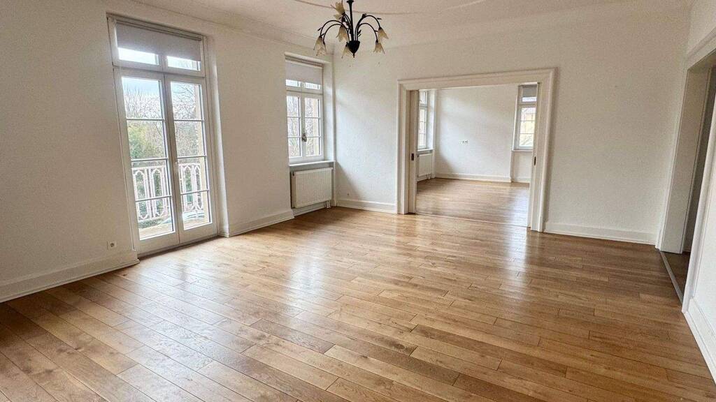 Vermietet wird eine besondere Wohnung in einem denkmalgeschützten Gebäude. Die Wohnung befindet sich im ersten Obergeschoss und erstreckt sich über die gesamte Etage. Die Wohnfläche beträgt ca. 160 m². Es stehen Wohnzimmer, drei Schlafzimmer sowie ein Esszimmer mit integrierter Küche zur Verfügung. Und ein außergewöhnlich großer Balkon an der abgeschirmten Hausrückseite, ca. 18 m² groß! Großzügige Räume, zahlreiche Fenster, Stuckdecken, Eichendielenböden, ein weiterer Balkon mit Flügeltür und die original Schiebetür zwischen Wohnbereich und Esszimmer schaffen eine sehr schöne Atmosphäre. Es gibt zwei Tageslicht-Bäder. Das Hauptbad mit Wanne, Dusche und das Gäste-Duschbad. Auch eine schöne Einbauküche gehört zur Ausstattung. Ein Kellerraum und ein Pkw-Außenstellplatz werden mitvermietet. Eckdaten zum Mietverhältnis: - Monatliche Kaltmiete: 2.100,- EUR - Monatsmiete Pkw-Stellplatz: 50,- EUR - Monatliche Nebenkosten-Vorauszahlung: 400,- EUR inkl. Heizung - Kaution: 2 Kaltmieten - Mindest-Mietvertragslaufzeit: 24 Monate; Kündigungsausschluss seitens Vermieter und Mieter