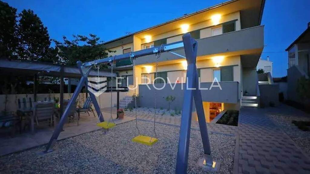 Zadar, Borik, moderna, elegantno novoopremljena kuca u mirnom predjelu grada. Zbog svoje lokacije idealna za obiteljski zivot, ali i za najam tokom cijele godine. U predivno uredenom dvoristu ima mjesta za bazen ili jacuzzi, a od mora i plaza je udaljena svega 500 metara.Kuca je na kat i sastoji se od tri potpuno odvojena stana i konobe idealne za druzenja uz kuhanje u podrumu.U prizemlju se nalazi stan s tri spavace sobe i dvije kupaone, te kuhinja s blagovaonom i dnevni boravak. Tu je jos i terasa iz koje se izlazi u dvoriste.Na katu su dva stana. Jedan je jednosoban s kupaonom, kuhinjom i dnevnim boravkom, te jedan dvosoban koji se sastoji od dvije spavace sobe, kupaone, kuhinje s blagovaonom i dnevnog boravka. Oba stana imaju izlaz na terasu.Iza kuce se nalazi prostorija koja je veseraj.Kuca ima tri parkirna mjesta.U blizini se nalazi market, trznica, ljekarna, djecji vrtic, skola, restorani, te ostali sadrzaji bitni za ugodan zivot.Ova nedavno uredena kuca je na savrsenoj lokaciji i stvarno je vrijedi pogledati.Za vise informacija stojim na raspolaganju.... Vise na eurovilla.hr, ID: 724900