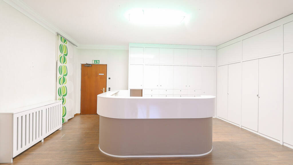 Diese ehemalige Zahnarztpraxis genießt eine strategisch günstige Lage mit guter Anbindung an das öffentliche Verkehrsnetz und die Autobahn. In unmittelbarer Umgebung befinden sich Geschäfte, Restaurants und andere Einrichtungen, die den Arbeitsalltag erleichtern.