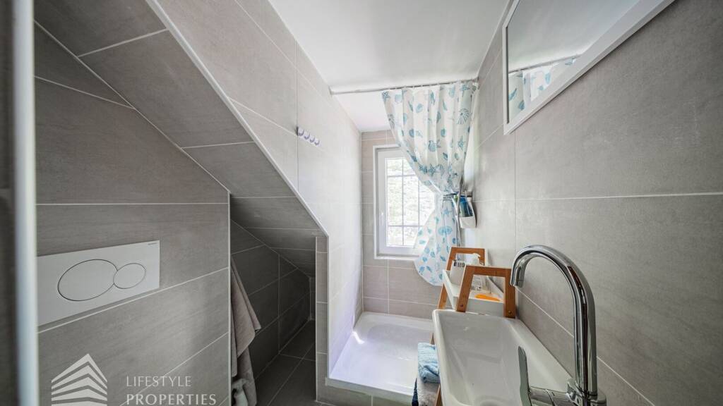 Das Objekt ist ein wahres Schmuckstück und mit allem ausgestattet, was für einen behaglichen Aufenthalt nach dem Baden notwendig ist. Über die Veranda betreten Sie das großzügige Wohnzimmer, eine komplett eingerichtete Küche sowie ein gemütliches Schlafzimmer. Im Obergeschoss erwarten Sie zwei weitere Schlafzimmer sowie ein modernes Duschbad/WC. Zusätzlich gibt es eine kleine Dependance mit eigenem Schlafzimmer, Dusche und WC, perfekt für Gäste oder eine zusätzliche private Auszeit. Ein praktisches Gartenhäuschen für Gartengeräte und Badeutensilien rundet das Angebot ab.
