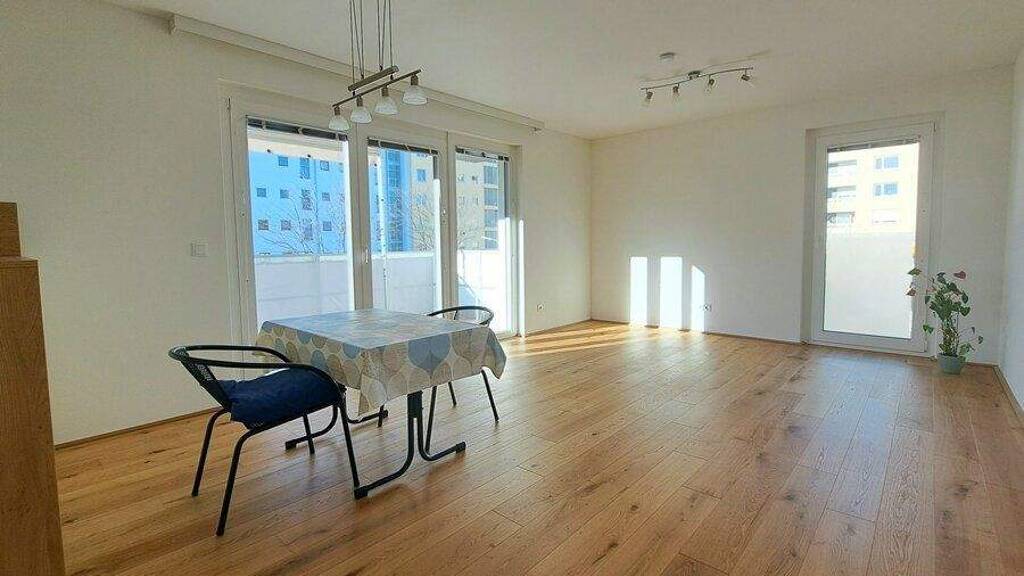 Von der Tiefgarage mit dem Lift kommend, betreten Sie Ihr neues zu Hause in ein freundliches Vorzimmer (mit Fenster und Platz für Garderobe). Von diesem VR gelangen Sie in alle weiteren Zimmer (2 Schlafräume und das Wohnzimmer), das Bad und das extra WC. Die Küche ist offen im Wohnraum integriert. Ein praktischer AR (Speisekammer) liegt neben der Küche. Vom freundlichen Wohnzimmer betreten Sie Ihren großen (fast 10m²) Balkon (geschützt durch Überdachung, und mit genügend Abstand zu Nachbarn). Ein ordentliches Kellerabteil gehört ebenfalls zur Wohnung wie ein vollwertiger Tiefgaragenstellplatz. Ein Fahrrad- und Kinderwagen-Raum ist ebenfalls vorhanden.