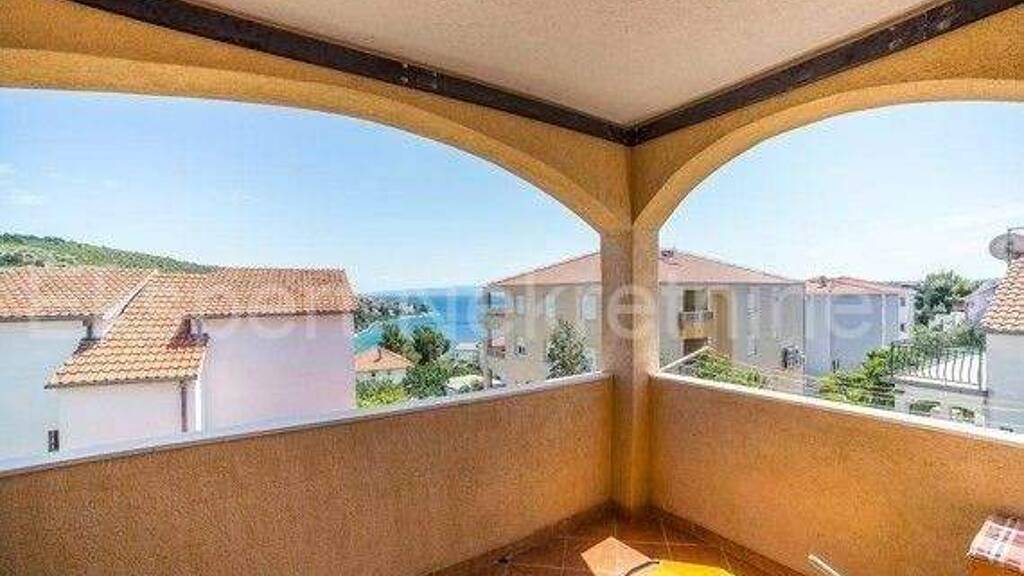 Vom Balkon aus hat man einen Blick auf das Meer.