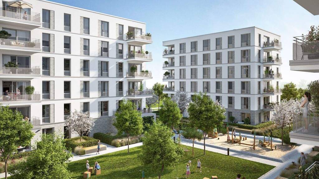 Besonderes Augenmerk wurde auf Nachhaltigkeit und Mobilität gelegt: Neben einer Tiefgarage mit optionalen E-Ladestationen stehen über 300 Fahrradstellplätze sowie Sharing-Angebote wie Lastenräder zur Verfügung. Ein autofreier Innenhof mit Grünflächen, Spielplätzen und Sitzbereichen schafft ein geschütztes und lebendiges Wohnumfeld. Die hochwertige Ausstattung mit Parkettböden, Fußbodenheizung und modernen Bädern rundet das zeitgemäße Wohnkonzept ab.