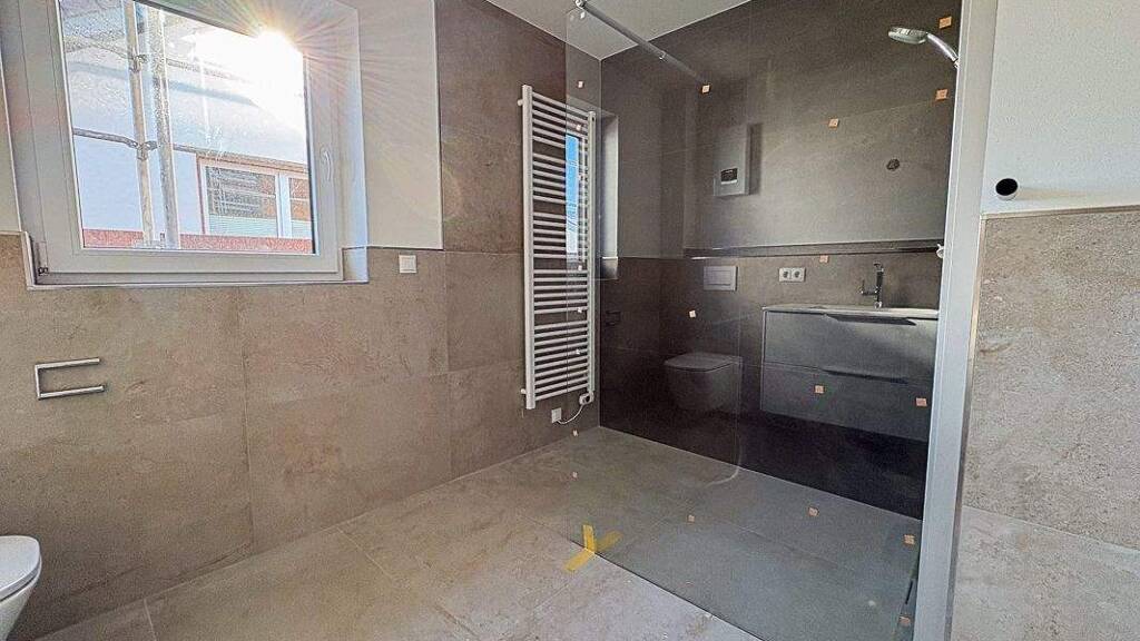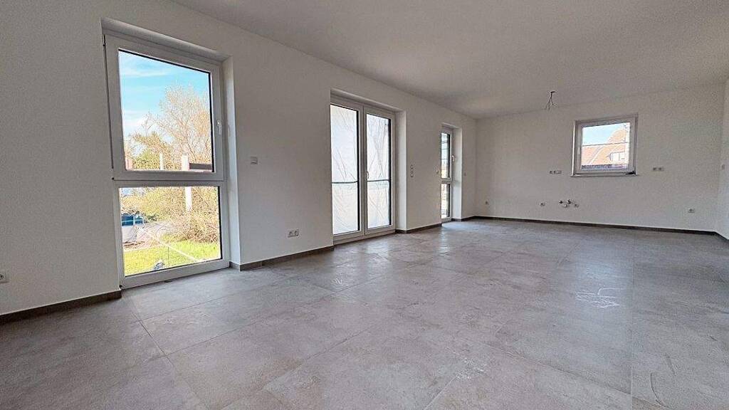 In einem attraktiven Neubauprojekt, befindet sich diese hochwertige Etagenwohnung mit moderner Ausstattung und durchdachtem Grundriss. Die Wohnung bietet vier Zimmer und eignet sich ideal für Paare, Familien oder Berufstätige mit Platzbedarf für ein Homeoffice. Bereits beim Betreten der Wohnung empfängt Sie eine großzügige Diele, von der aus alle Räume bequem erreichbar sind. Das Herzstück der Wohnung bildet der helle Wohn- und Essbereich mit offener Küche, der ein modernes und kommunikatives Wohnkonzept ermöglicht. Von hier aus gelangen Sie direkt auf den geräumigen Balkon, der zusätzlichen Platz zum Entspannen im Freien bietet. Die Wohnung verfügt über drei gut geschnittene Schlafzimmer, die flexibel als Schlaf-, Kinder- oder Arbeitszimmer genutzt werden können. Ein großer Abstellraum innerhalb der Wohnung sorgt für zusätzlichen Stauraum und trägt zu einem komfortablen Wohnalltag bei. In sämtlichen Räumen sorgt eine Fußbodenheizung für angenehme Wärme und ein behagliches Wohnklima. Zur Wohnung gehört außerdem ein geräumiger Kellerraum. Im Untergeschoss steht den Bewohnern zusätzlich eine gemeinschaftliche Waschküche zur Verfügung. Das gesamte Gebäude ist mit einer zentralen Entkalkungsanlage ausgestattet. Ein Stellplatz im Innenhof kann optional gegen ein monatliches Entgelt angemietet werden. Das Gebäude erfüllt einen sehr hohen energetischen Standard und steht damit für energieeffizientes und nachhaltiges Wohnen. Diese Wohnung verbindet modernes Wohnen, energieeffiziente Bauweise und eine attraktive Raumaufteilung ideal für alle, die den Komfort eines Erstbezugs in einem Neubau schätzen.