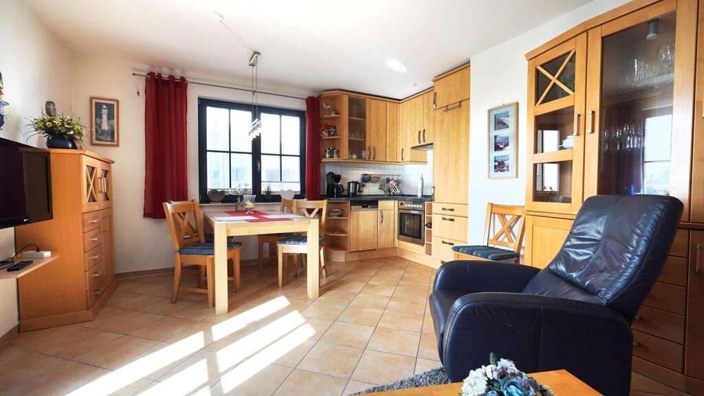 Der Wohnbereich überzeugt mit hochwertigen, pflegeleichten Fliesen sowie einer modernen Einbauküche, die bereits im Kaufpreis enthalten ist und sofort genutzt werden kann. Die sonnige Terrasse lädt zu entspannten Stunden im Freien ein.