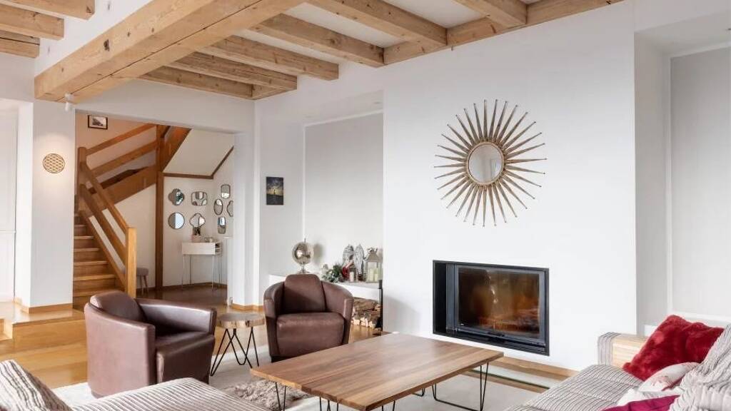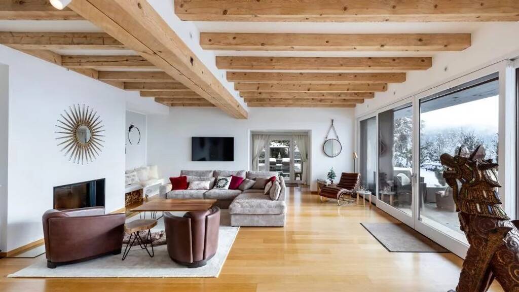 Der Wohnbereich besticht durch eine großzügige und helle Atmosphäre, mit großen Fenstern, die einen atemberaubenden Blick auf die umliegenden Berge bieten. Der stilvolle Spa-Bereich lädt zum Entspannen ein, während der private Spielplatz direkt vor der Tür ideale Möglichkeiten für Familien bietet. Die Kombination aus Holzdetails und modernem Design verleihen dem Haus einen einzigartigen Charakter.