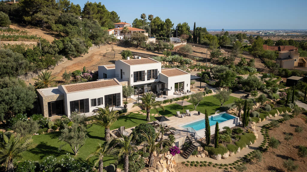 This stylish new-build finca is located in the picturesque village of Bunyola and offers marvellous panoramic views of the majestic Tramuntana mountains. Absolute privacy and tranquillity are guaranteed here. The finca sits enthroned on a plot of approx. 17,400 m2, surrounded by soothing nature and a beautifully landscaped garden. The living space of approx. 370 m2 comprises: 5 bedrooms, 6 bathrooms, living/dining area, fitted kitchen and dressing room, which can easily be converted into a 5th bedroom. The charming interior combines Mediterranean and modern style elements to create an incredible holiday feeling. This dream home was built using only the highest construction quality and energy-efficient technology. Air conditioning, underfloor heating, a fireplace, solar panels, video security, LED lighting and much more ensure maximum living comfort. The outdoor area enchants with a fairytale garden, large pool, whirlpool, sauna and chill-out area. The perfect place to unwind and enjoy the fantastic weather. The feel-good oasis on Mallorca!