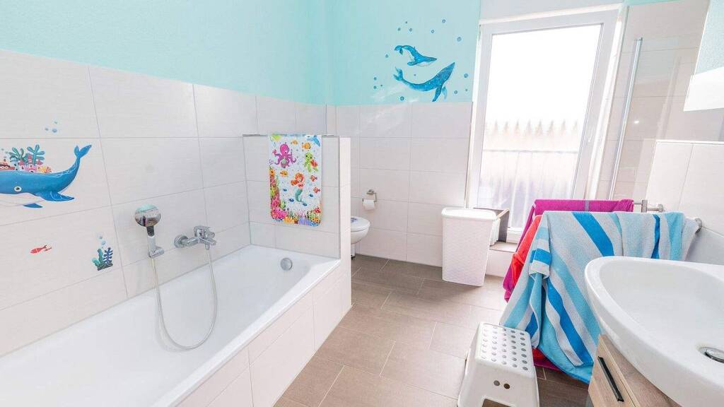 Im Obergeschoss befinden sich drei Schlafzimmer und ein modernes Badezimmer. Das Elternschlafzimmer misst ca. 17?m² und bietet viel Raum zum Wohlfühlen. Die beiden Kinderzimmer sind ca. 13?m² und 14?m² groß und lassen sich flexibel als Kinder-, Arbeits- oder Gästezimmer nutzen. Das ca. 8?m² große Badezimmer ist mit Dusche und Badewanne ausgestattet und bietet ausreichend Platz für die ganze Familie. Zusätzlicher Stauraum ist über den Bodenraum verfügbar, sodass alles Notwendige bequem untergebracht werden kann.