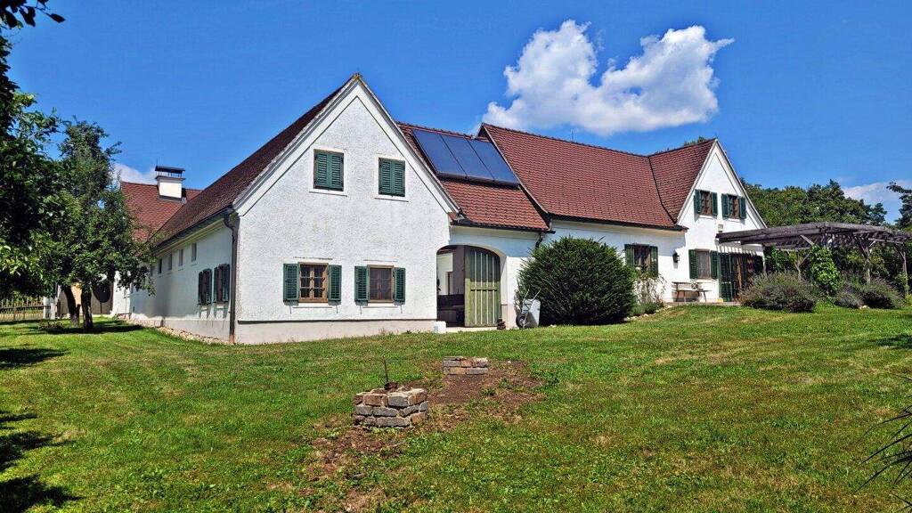 Ca. 440 m² Wohnnutzfläche (lt. Grundrissplan bzw. historischer Skizze) verteilt sich auf mehrere Trakte, die sowohl gemeinsames Wohnen als auch abgeschlossene Wohnbereiche ermöglichen. Generalsarniert wurden: Dach, Fenster, Elektroinstallationen, Ölzentralheizung-Fußbodenheizung, Parkett- und Fliesenböden sowie das Atrium mit Swimmingpool (3,5 × 7 m, Tiefe 1,5 m), Sauna, ...
