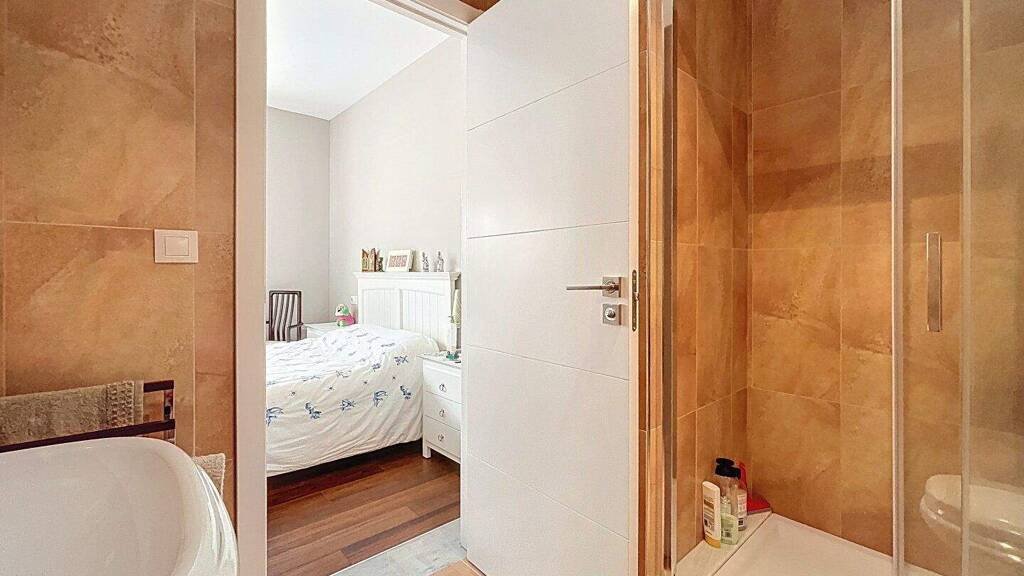 Die Wohnung verfügt über 3 Schlafzimmer, eines davon mit Badezimmer en suite, sowie ein zweites voll ausgestattetes Bad.