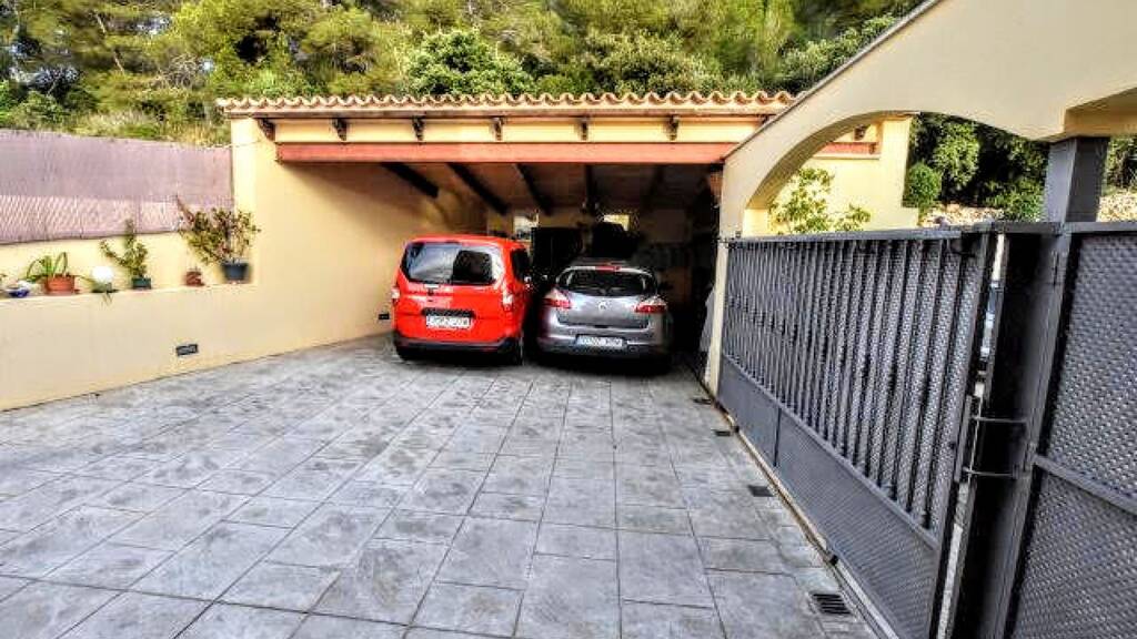 Das Haus besteht aus einem Erdgeschoss und zwei Etagen. Im Erdgeschoss befinden sich ein Hauptschlafzimmer mit Ankleidezimmer, zwei Doppelschlafzimmer und ein schönes Badezimmer mit einer großen halbrunden Eckbadewanne. Auf derselben Etage befindet sich eine ca. 100 m² große Terrasse, eine Veranda mit Zugang zu den Schlafzimmern. Einige Außentreppe führt zum Hauptgeschoss des Anwesens. Diese erste Etage besteht aus einer Garagenveranda mit Platz für zwei Autos, einem großen Esszimmer von ca. 45 m² mit einem Kamin, einem Schlafzimmer mit Doppelbett und einem Ankleidezimmer, einem kompletten Badezimmer mit Badewanne und einer voll ausgestatteten Küche.